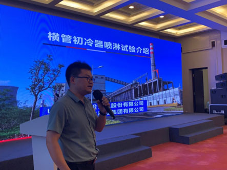? ? ? ? ? ? ? ? ? ? ? ?山東省冶金設(shè)計院股份有限公司焦化事業(yè)部作題為 “大型焦?fàn)t配套煤氣凈化橫管初冷器噴淋試驗介紹”的發(fā)言